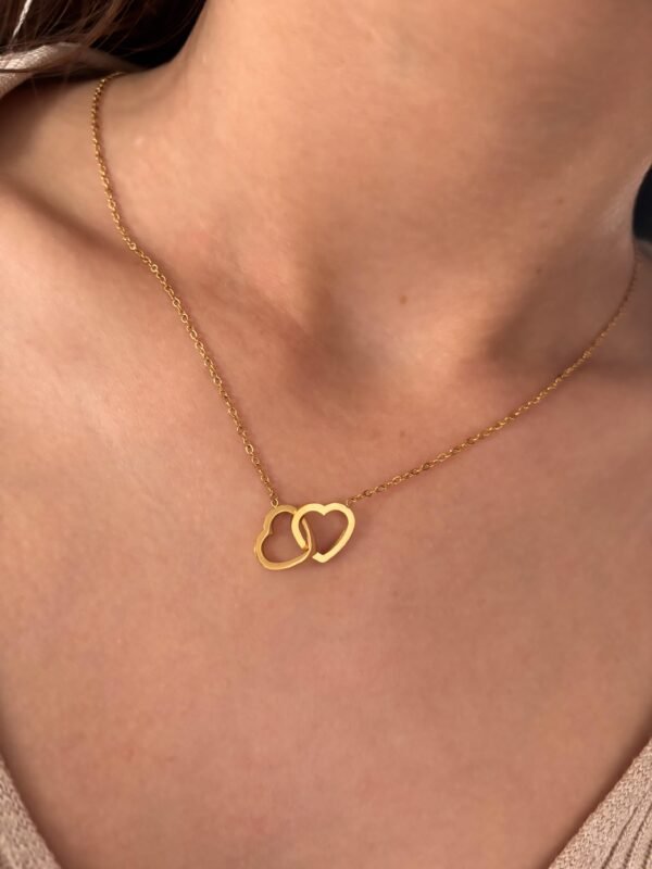 COLLAR CON CORAZONES DE ACERO DORADO